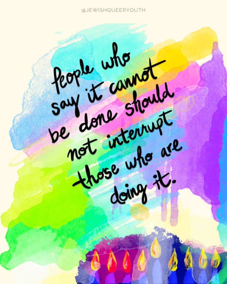 There have always been voices like that. History is full of them. And history is also full of Jews and queer people who kept going anyway.